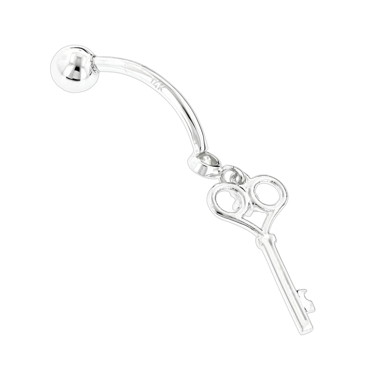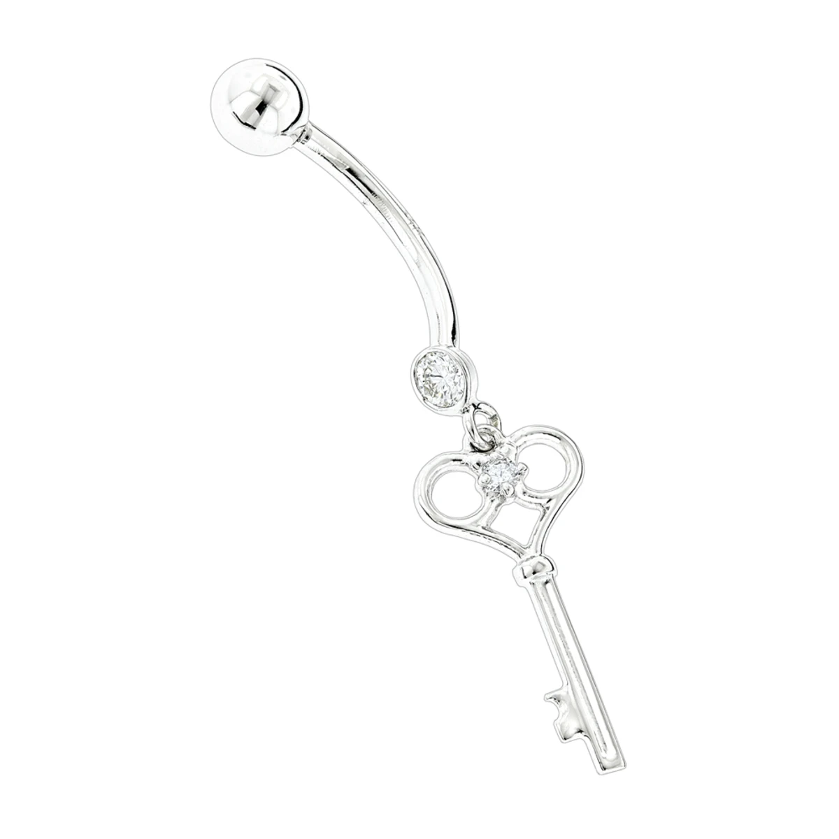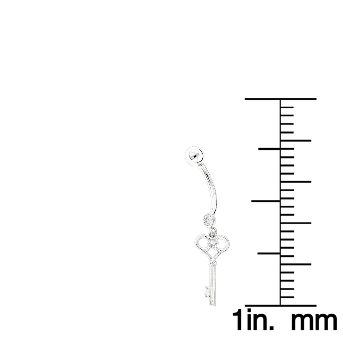 Diamond Body Jewelry: This 14K Dangling Key Diamond Belly Button Ring features 0.14 ctw of sparkling round diamonds. Featuring a fabulous design and a highly polished gold finish, this key diamond belly button ring is available in 14K white, yellow, or rose gold and can be customized with different fancy color diamonds.