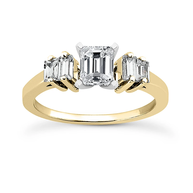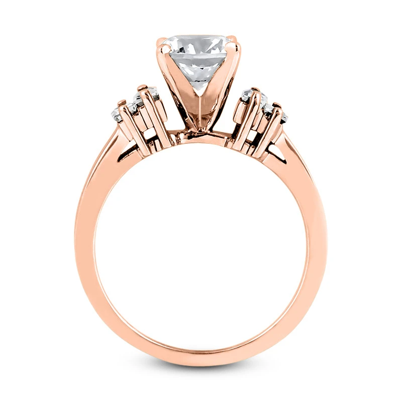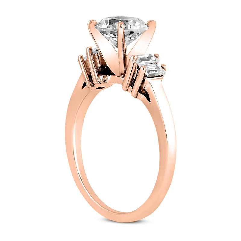 This 14K Gold Designer Diamond Engagement Ring weighs approximately 2.7 grams and showcases a 0.50 carat round diamond in the center and 0.36 carats of baguette cut diamonds on the sides for a total of 0.86 carats of dazzling diamonds and is available in Platinum, 18k or 14k yellow, rose, white gold, various sizes, and can be customized with any color and quality diamonds. Center diamond can be from 0.50ct to 5ct (gold weight and number of stones may vary). Please note: it will take us 3-5 business days to make this ring for you so please plan accordingly. Please contact us at 212-398-3123 if your size or desired option is not listed.