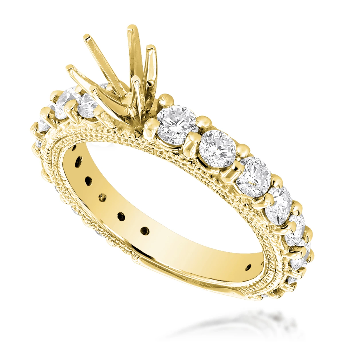 This 14K Gold Diamond Engagement Ring Mounting showcases 1.76 carats of dazzling round diamonds and is available in Platinum, 18k or 14k yellow, rose, white gold, various sizes, and can be customized with any color and quality diamonds. This ring can accommodate from 0.50ct to 5ct round stone as a center (gold weight and number and carat weight of side stones may vary). Please note: This listing is for engagement ring mounting only, center diamond is for illustration purposes only and is sold separately. This mounting is priced to fit up to 0.50ct center stone. If you need it to fit a larger stone please contact us toll free in USA: 1-866-423-6262 or outside USA: 212-398-3123 prior to making a purchase as the price will vary depending on the size of your center stone.