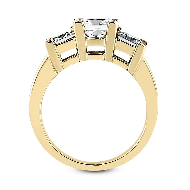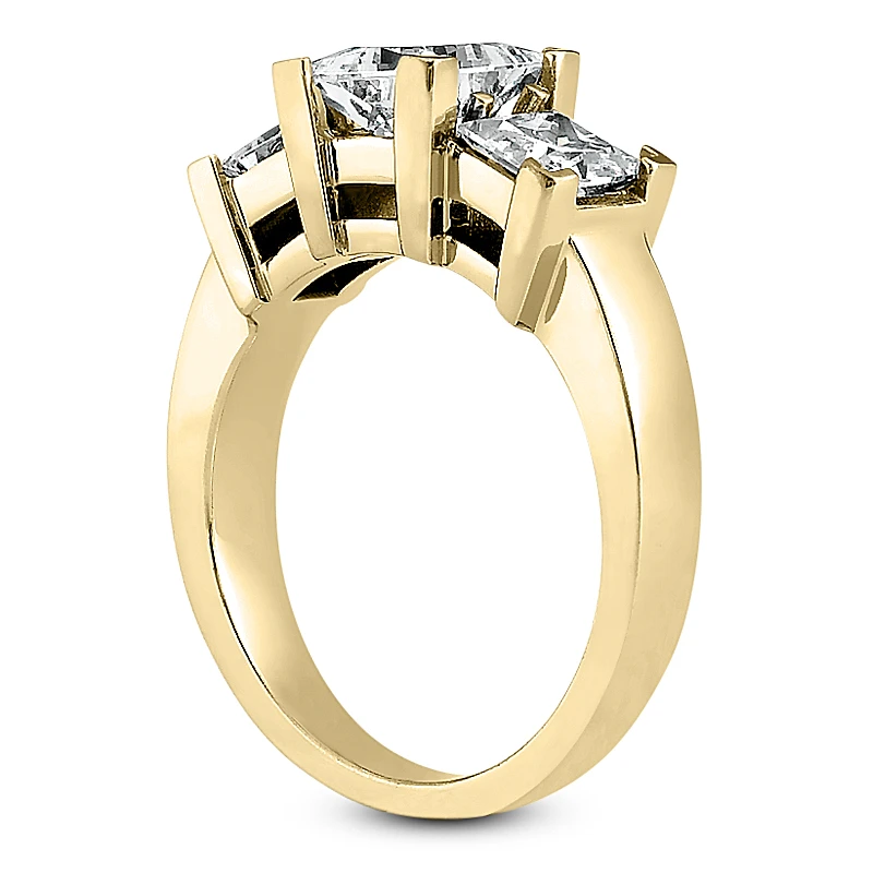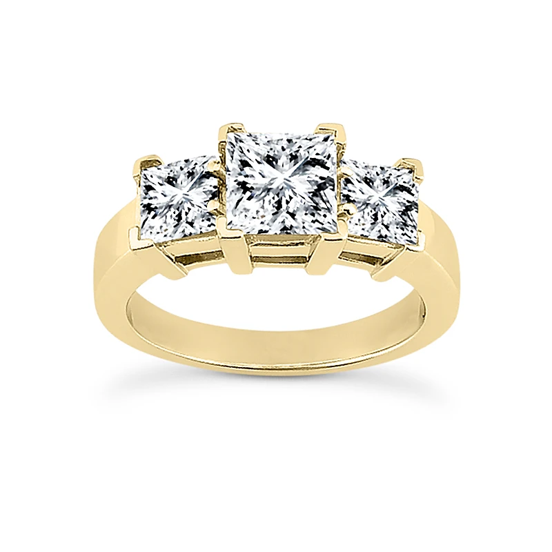 This 14K Gold Diamond Three Stone Engagement Ring showcases a 0.40 carat princess cut diamond in the center and 0.40 carats of princess cut diamonds on the sides for a total of 0.80 carat of dazzling diamonds and is available in Platinum, 18k or 14k yellow, rose, white gold, various sizes, and can be customized with any color and quality diamonds. Center diamond can be from 4.5mmx4.5mm (0.40ct) to 10mmx10mm (gold weight and number of stones may vary). Please note: it will take us 3-5 business days to make this ring for you so please plan accordingly. Please contact us at 212-398-3123 if your size or desired option is not listed.