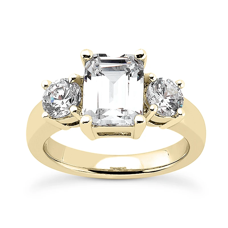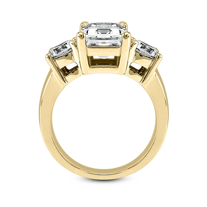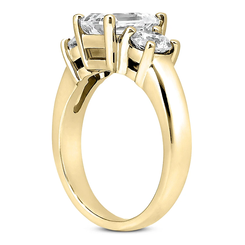 This 14K Gold Diamond Three Stones Engagement Ring showcases a 0.50 carat emerald cut diamond in the center and 0.20 carat of round diamonds on the sides for a total of 0.70 carat of dazzling diamonds and is available in Platinum, 18k or 14k yellow, rose, white gold, various sizes, and can be customized with any color and quality diamonds. Center diamond can be from 0.50ct to 3ct (gold weight and number of stones may vary). Please note: it will take us 3-5 business days to make this ring for you so please plan accordingly. Please contact us at 212-398-3123 if your size or desired option is not listed.