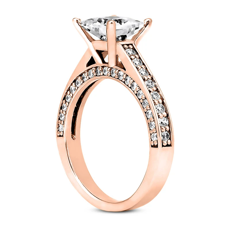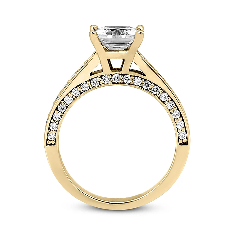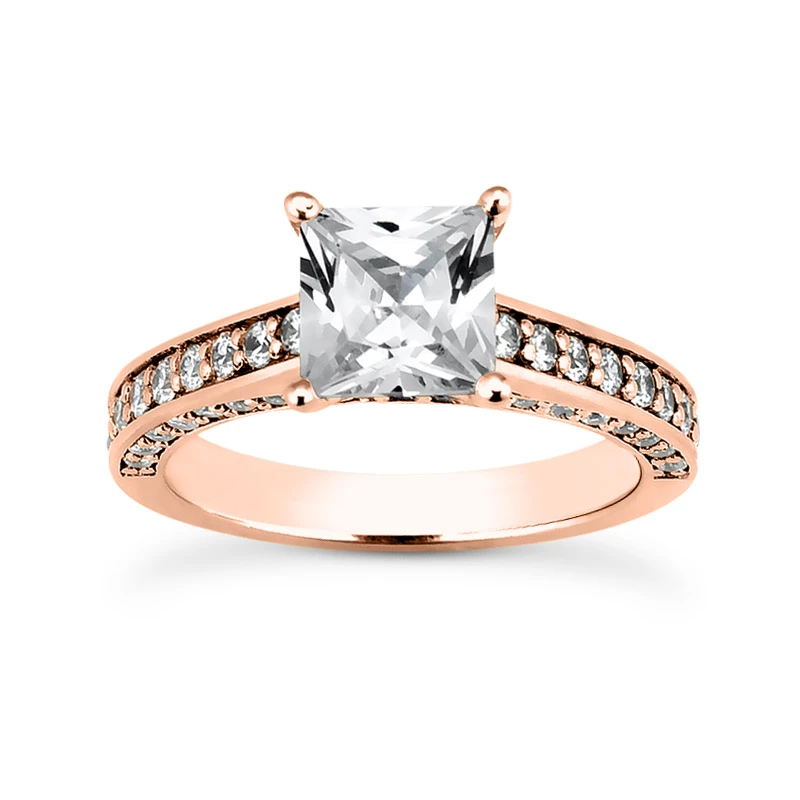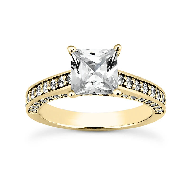 This 14K Gold Diamond Unique Engagement Ring showcases a 0.63 carat princess cut diamond in the center and 0.58 carats of round diamonds on the sides for a total of 1.21 carat of dazzling diamonds and is available in Platinum, 18k or 14k yellow, rose, white gold, various sizes, and can be customized with any color and quality diamonds. Center diamond can be from 0.63ct to 10mmx10mm (gold weight and number of stones may vary). Please note: it will take us 3-5 business days to make this ring for you so please plan accordingly. Please contact us at 212-398-3123 if your size or desired option is not listed.