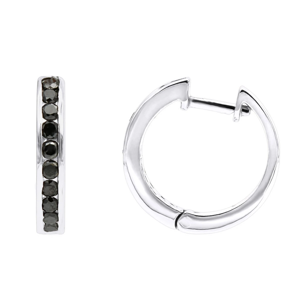 Be the first to review “14K White Gold Hoop Huggie Black 0.6 Carat Diamond Earrings For Women” Cancel reply