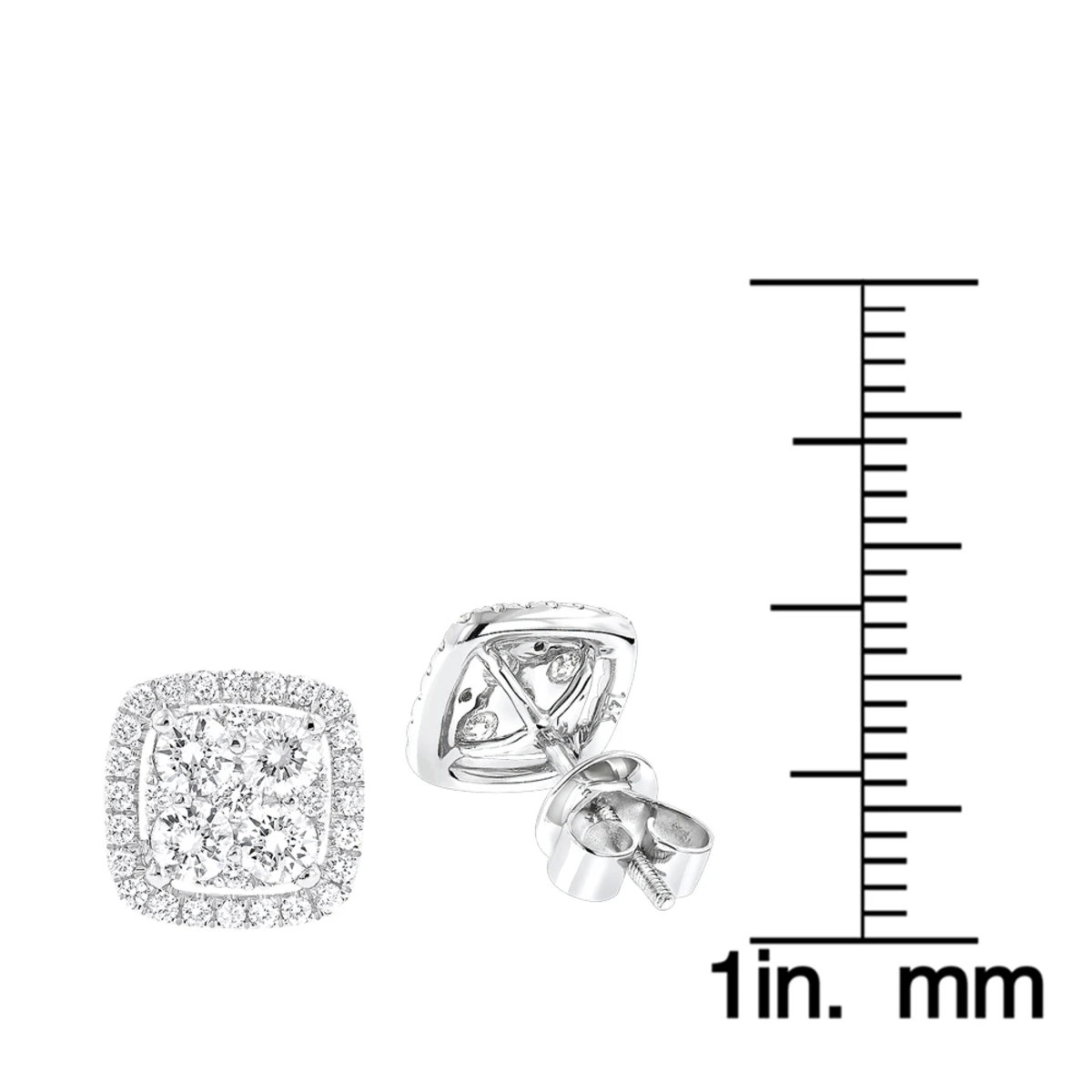 These 14K Gold Round Diamond Cluster Earrings Studs by Luxurman showcase 1.5 carats of dazzling white round diamonds masterfully pave set in 14K gold frame. These square diamond studs available in 14K white, yellow and rose gold and will make a great gift for any occasion.