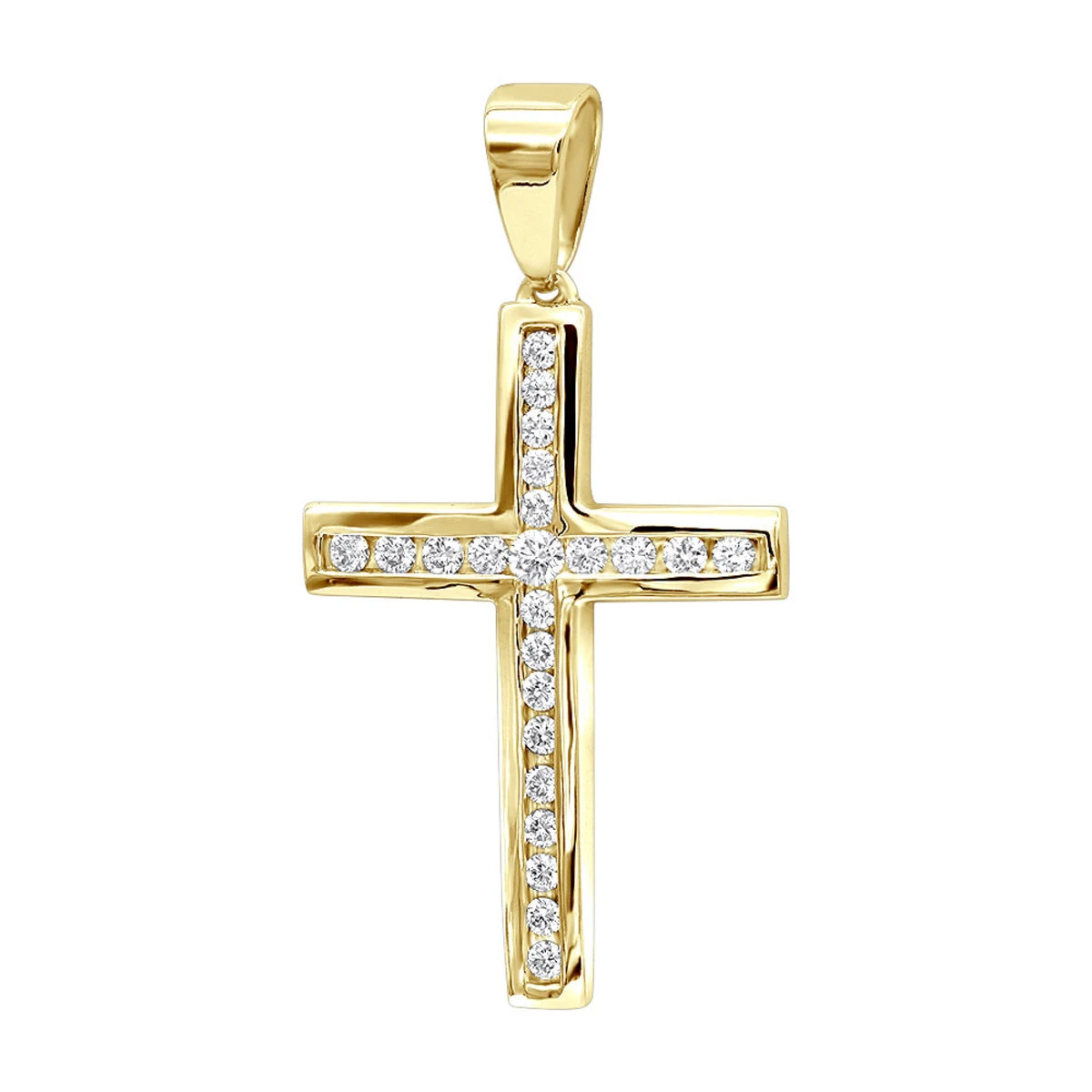 This Round Diamond cross necklace features 1.36 carats of round diamonds (23 diamonds). This diamond cross necklace is available in Platinum, 18k or 14k yellow, rose, white gold, various sizes, and can be customized with any color and quality diamonds. Please note: it will take us 3-5 business days to make this pendant for you so please plan accordingly. Please contact us at 212-398-3123 if your size or desired option is not listed. You also can personalize this piece or check we’ve already made and create your own design.