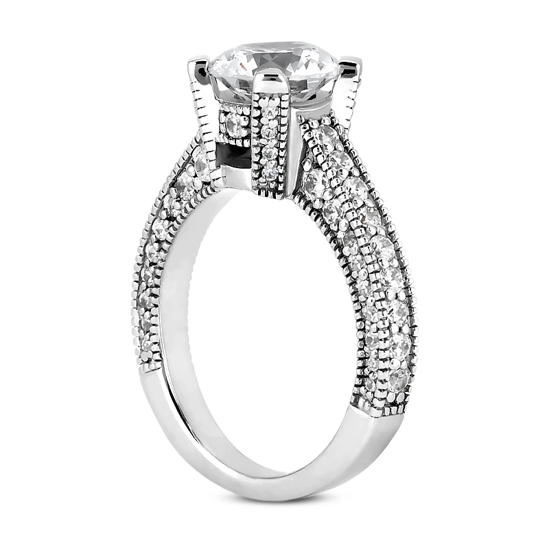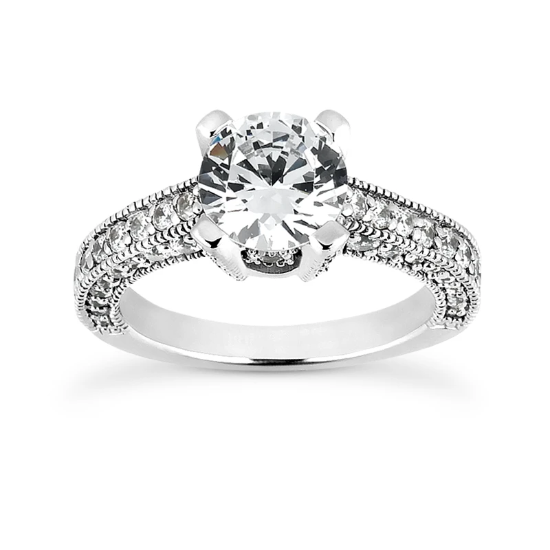 This 14K Gold Unique Diamond Engagement Ring showcases a 0.50 carat round diamond in the center and 0.68 carats of round diamonds on the sides for a total of 1.18 carat of dazzling diamonds and is available in Platinum, 18k or 14k yellow, rose, white gold, various sizes, and can be customized with any color and quality diamonds. Center diamond can be from 0.50ct to 2.50ct (gold weight and number of stones may vary). Please note: it will take us 3-5 business days to make this ring for you so please plan accordingly. Please contact us at 212-398-3123 if your size or desired option is not listed.