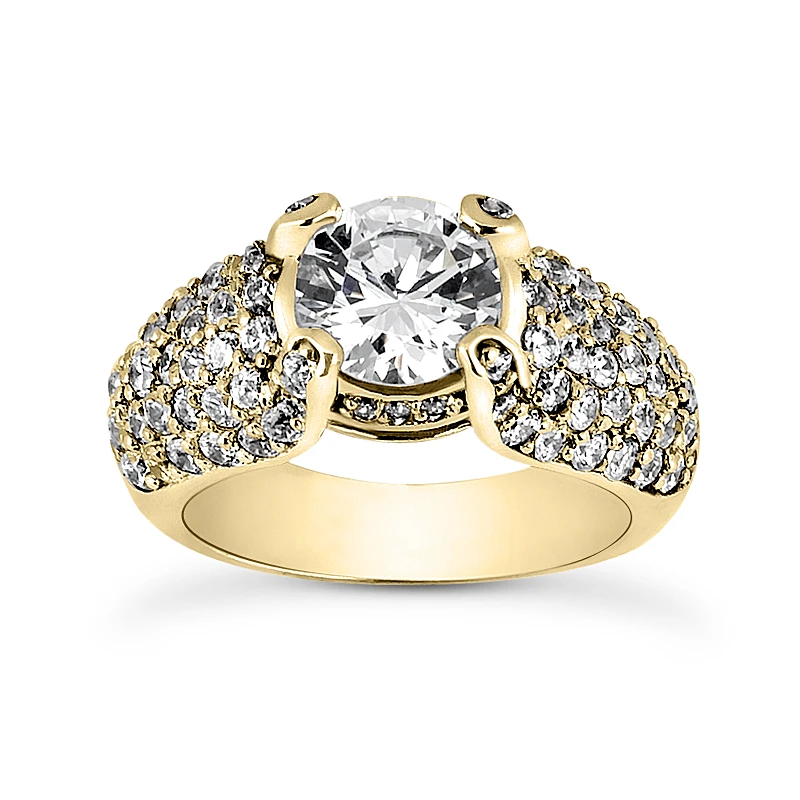 This 14K Gold Unique Diamond Engagement Ring showcases a 0.50 carat round diamond in the center and 1.04 carats of round diamonds on the sides for a total of 1.54 carat of dazzling diamonds and is available in Platinum, 18k or 14k yellow, rose, white gold, various sizes, and can be customized with any color and quality diamonds. Center diamond can be from 0.50ct to 3ct (gold weight and number of stones may vary). Please note: it will take us 3-5 business days to make this ring for you so please plan accordingly. Please contact us at 212-398-3123 if your size or desired option is not listed.