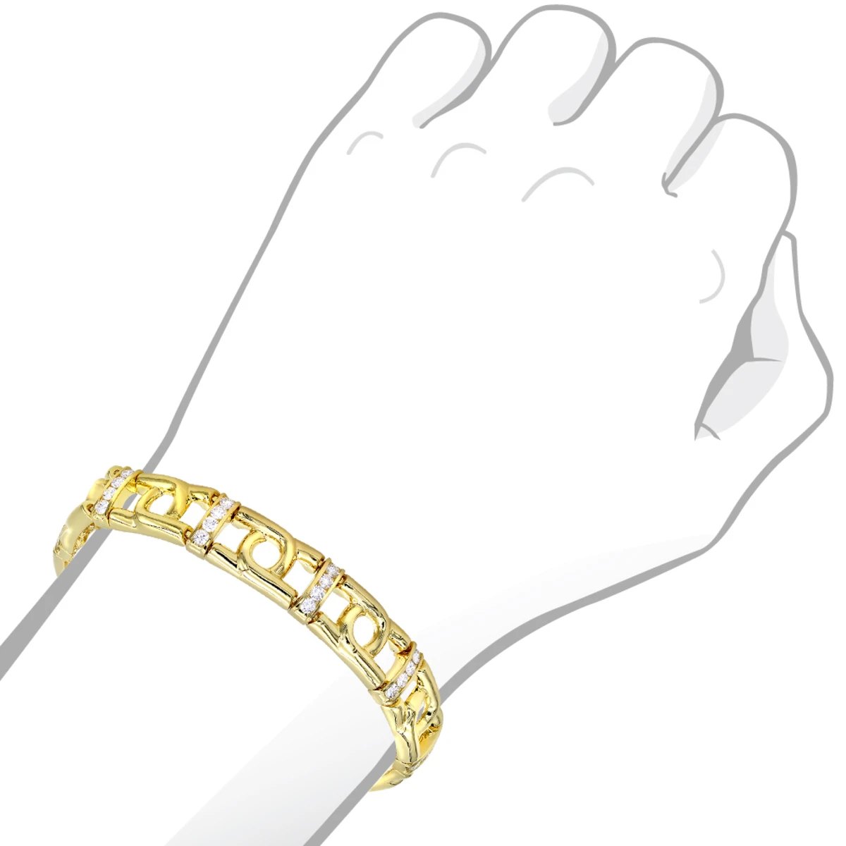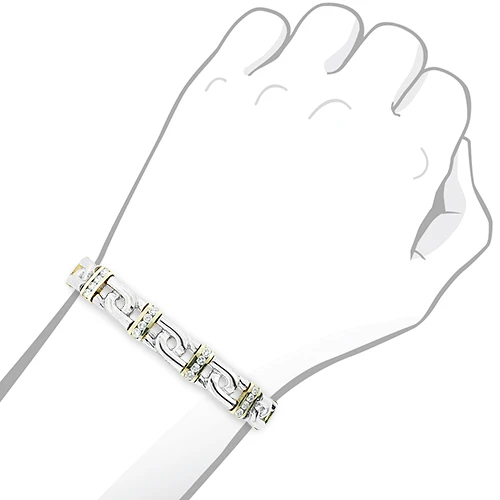This 14K White Yellow Gold Men’s Diamond Two-Tone Bracelet showcases 4 carats of genuine channel set diamonds. Featuring a beautiful combination of white and yellow gold and a luxurious polished gold finish, this men’s diamond bracelet is available in 14K white, yellow and rose gold and different color combinations.