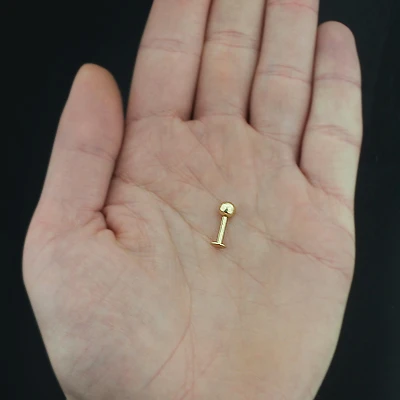 Gold Body Jewelry! This 14K Gold Diamond Ball Labret Stud (14 gauge) showcases a 0.08-carat round diamond and is available in 14K white, yellow and rose gold; and can be custom made with white or fancy color diamonds; contact us for details.