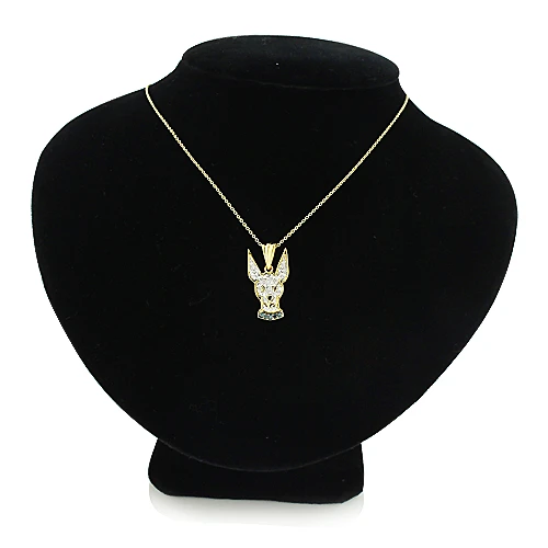This Dazzling Diamond Chihuahua Pendant in 14K gold from our Dog Jewelry for People collection weighs approximately 4 grams and showcases 0.51 carats of sparkling white, brown and blue diamonds. Featuring an exquisite design this diamond dog charm is available in 14K white, yellow and rose gold, and can be customized with any color diamonds/gemstones. Chain must be purchased separately. You also can personalize this piece or check we’ve already made and create your own design.