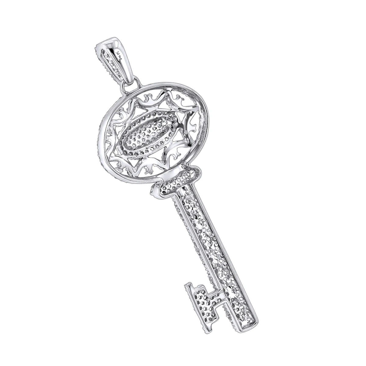 This 14K Gold Diamond Key Pendant for Women showcases 1 carat of genuine diamonds. Featuring an intricate design and a highly polished gold finish, this fabulous diamond key necklace is available in 14K white, yellow and rose gold. Please note: the chain is for illustration purposes only and must be purchased separately. You also can personalize this piece or check we’ve already made and create your own design.