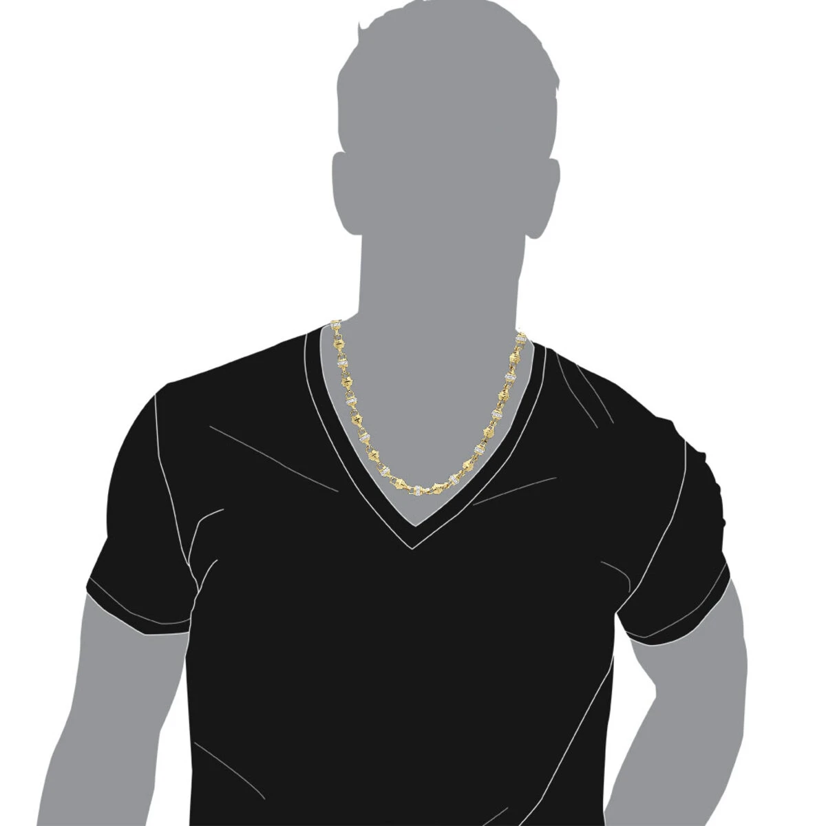 Men’s Diamond Necklaces Collection: This Real 14k Gold Men’s Diamond Chain features a unique design made in solid 14k gold and decorated with 6.81 carats of diamonds. The price is for the 30 inch long chain but we can customize it to your specification to be any length. This diamond necklace for men is available in yellow gold, white gold and rose gold.