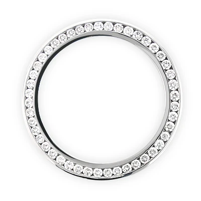 This 5 Carat Luxurious Breitling Custom Diamond Bezel for Super Avenger showcases 5 carats of dazzling round diamonds, each masterfully set in polished steel. This fantastic diamond watch accessory is an after-market diamond bezel custom made by itshot.com in New York. Watch must be purchased separately.