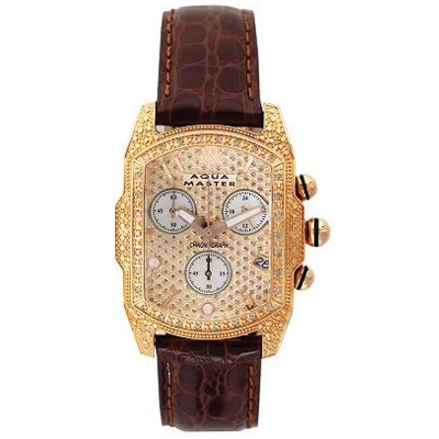 Affordable Aqua Master Ladies Watches! This Diamond Bubble Watch by AquaMaster features 20 round diamonds, 3 mother of pearl chronograph subdials, a polished stainless steel case and a genuine leather band. This versatile ladies diamond Aqua Master watch showcases a professional chronograph movement and is water-resistant to 30m.