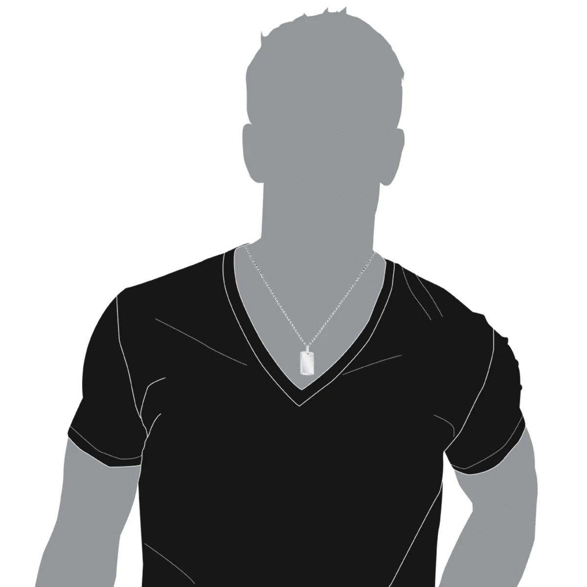 This stylish Sterling Silver Diamond Dog Tag Pendant for Men by Luxurman features a very clean and classy design decorated with a genuine sparkling flush set round cut diamond and includes a sterling silver chain making it a very classy necklace. This diamond dog tag pendant makes an amazing gift for any occasion and can be personalized with an engraving to make it even more of a special gift! You also can personalize this piece or check we’ve already made and create your own design.