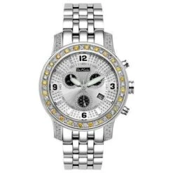Affordable Fully Iced Out Watches! This Luxurman Men’s Diamond Watch Liberty Model features 3 carats of round diamonds masterfully set on the bezel, sides, lugs and even the band of this silver stainless steel watch. The face of this LUXURMAN watch is fully paved in sparkling stones and showcases three subdials. This men’s diamond watch is water-resistant to 30 m (110 ft), brand new, comes in full retail packaging with two extra leather bands, makes a great present.