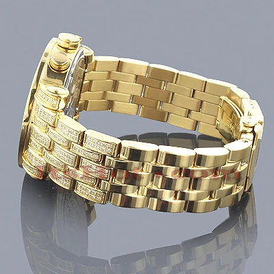 Popular JoJo Men’s Watches! This Joe Rodeo Diamond Watch is adorned with 3.75 carats of genuine diamonds that really sparkle! With real diamonds on the bezel and lugs, this men’s diamond watch by Joe Rodeo features sparkling diamonds going half way around the strap. The Swiss-made chronograph quartz movement sits in the stainless steel case that is water resistant to 100M (330 FT). This men’s Joe Rode diamond watch comes with extra two interchangeable leather bands.