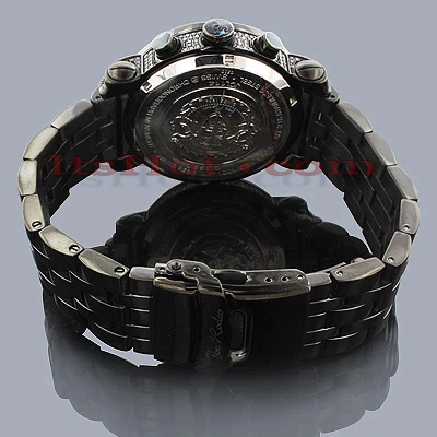 Unique Joe Rodeo Diamond Watches: This JoJo Classic Diamond Watch features 4.30 carats of sparkling white and blue diamonds on the bezel, sides and lugs of the black stainless steel case. This Joe Rodeo diamond watch showcases a dial paved in white and blue stones, a date display window at the 4 o’clock position, and a black stainless steel band. This luxurious men’s diamond watch by Joe Rodeo is equipped with a super accurate Swiss-made chronograph quartz movement. The case is water-resistant to 100m (330 ft).