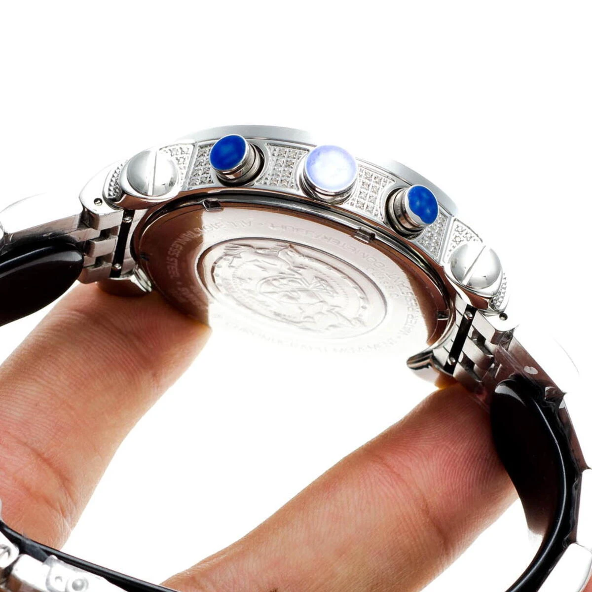 Designer Large Luxurman Phantom 0.12ct Black Diamond Watch For Men White Dial