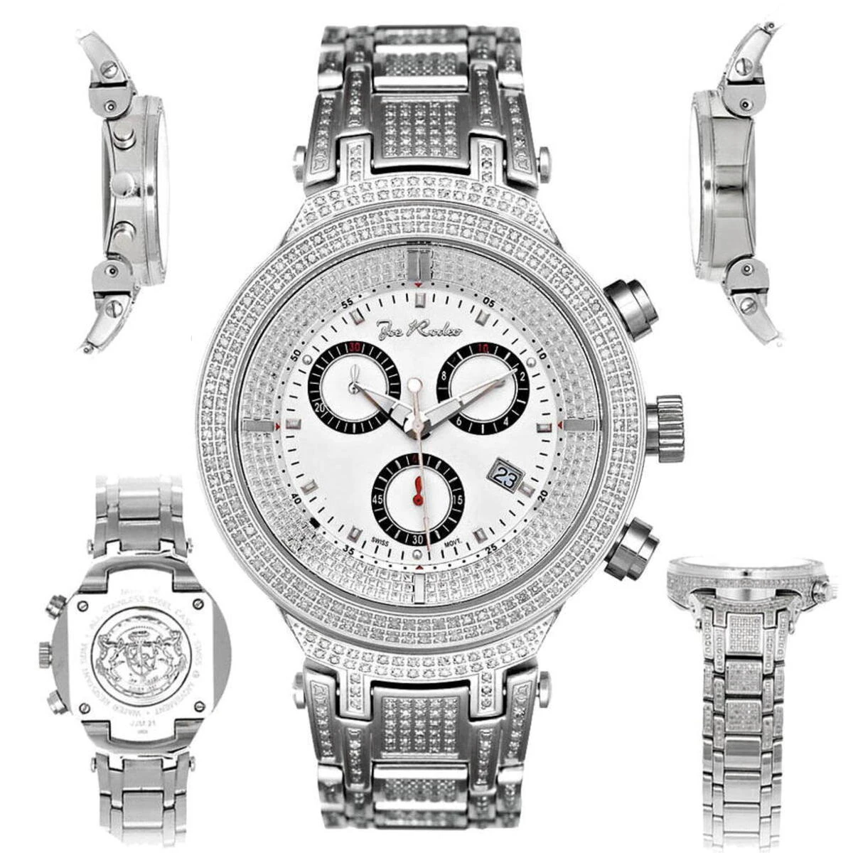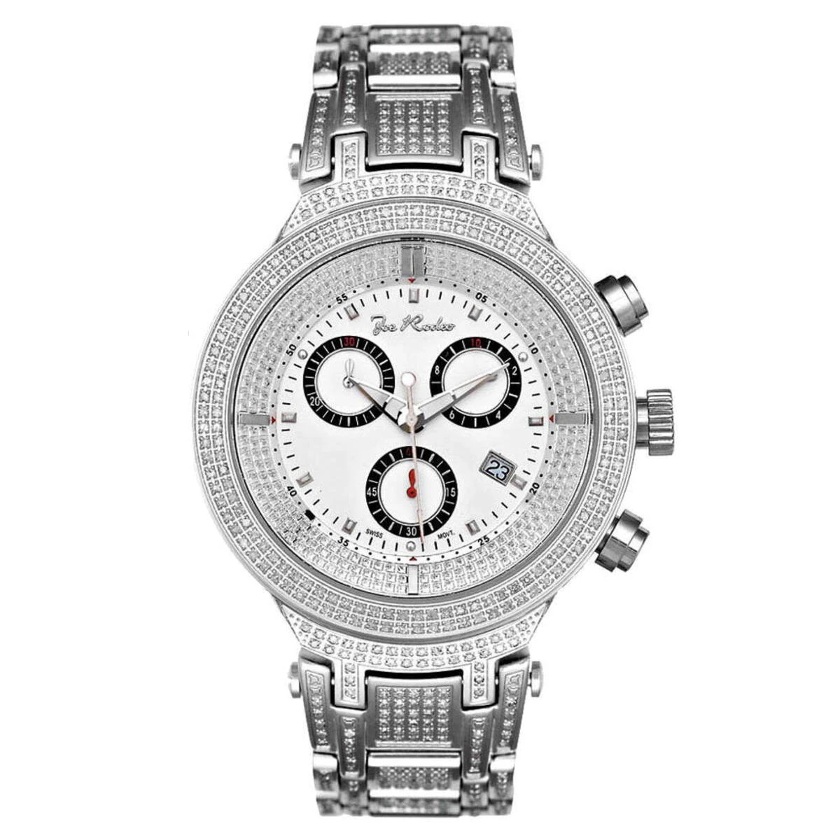 The Joe Rodeo Master 4.75.ct JJM13 Watch is a stunning timepiece that is sure to turn heads. This men’s watch features a 46mm stainless steel case with a 5 ATM water resistance rating, making it perfect for everyday wear. The watch is powered by a Swiss-Quartz movement, ensuring accurate timekeeping. The watch also features a chronograph, date indicator, and second hand-indicator for added convenience.The watch is adorned with 4.75 carats of genuine diamonds, making it a truly luxurious timepiece. The diamonds are set in a unique pattern, giving the watch a unique and eye-catching look. The watch also features a black dial with silver-tone hands and markers, making it easy to read the time. The watch is finished with a stainless steel bracelet with a deployment clasp, ensuring a secure and comfortable fit.The Joe Rodeo Master 4.75.ct JJM13 Watch is the perfect choice for any man who wants to make a statement. This luxurious timepiece is sure to be the envy of all who see it. With its stunning design and reliable Swiss-Quartz movement, this watch is sure to be a treasured piece for years to come.