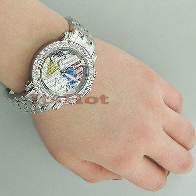This Joe Rodeo JoJo ladies diamond watch features 0.60 carats of round diamonds, polished stainless steel case, scratch-free crystal glass, individually numbered and engraved stainless steel case-back. Diamond Bezel, Silver Stainless Steel case. Fine Japan-made quartz movement with chronograph function, center second and date. Water-resistant to 100 meters. This luxurious ladies diamond watch by Joe Rodeo comes with two interchangeable straps in different colors. The patented strap adjusts once for a perfect fit, and comes on and off with the press of a button.