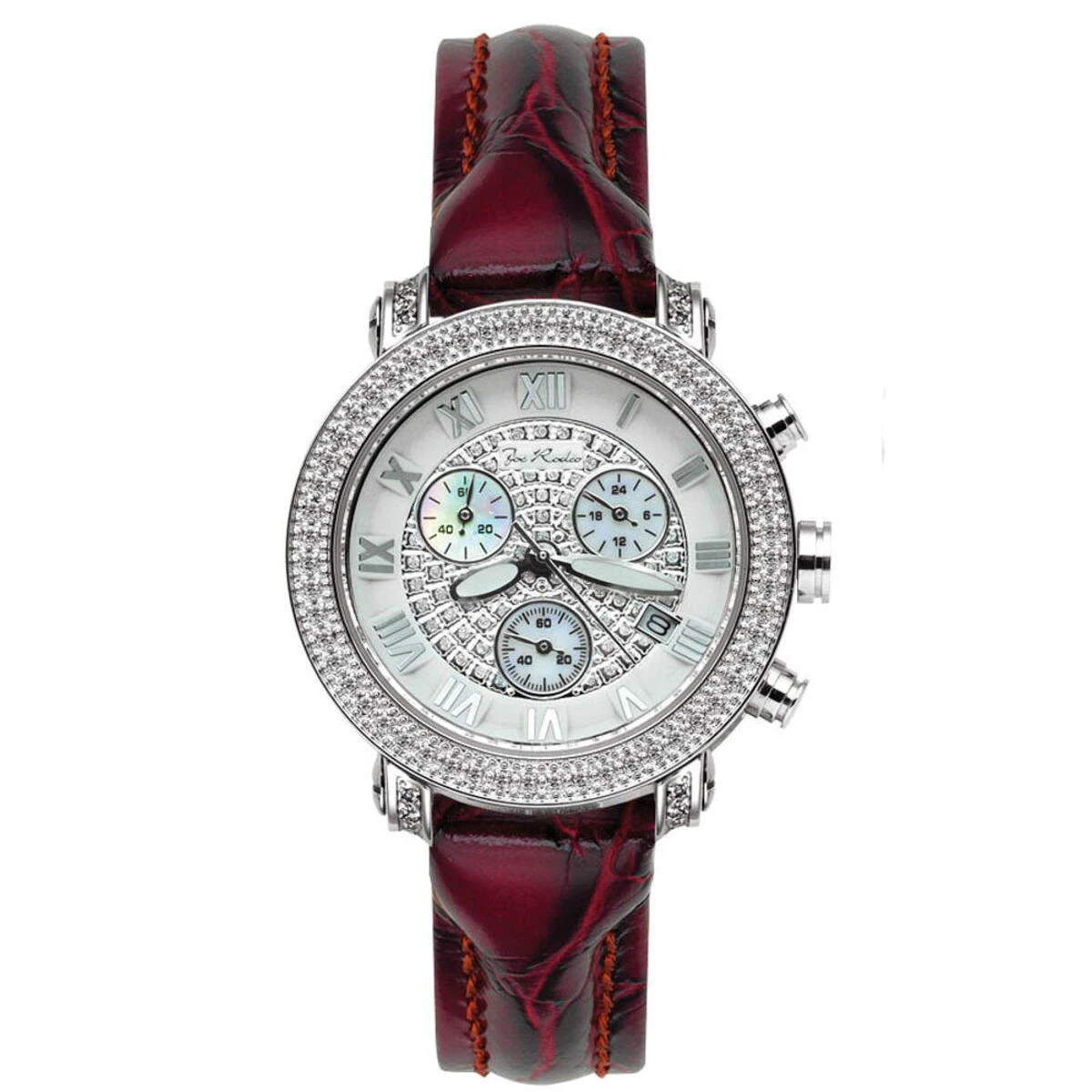 Luxurious Joe Rodeo Watches! This JOJO Ladies Diamond Watch Passion features a polished stainless steel case and 0.60 carats of diamonds on the bezel and lugs. Fine Japan-made quartz movement with chronograph function, center second and date will accurately keep time for you. This women’s diamond watch by Joe Rodeo comes with two interchangeable leather bands in different colors. The patented strap adjusts once for a perfect fit, and comes on and off with the press of a button. Water-resistant to 100 meters (330 ft).