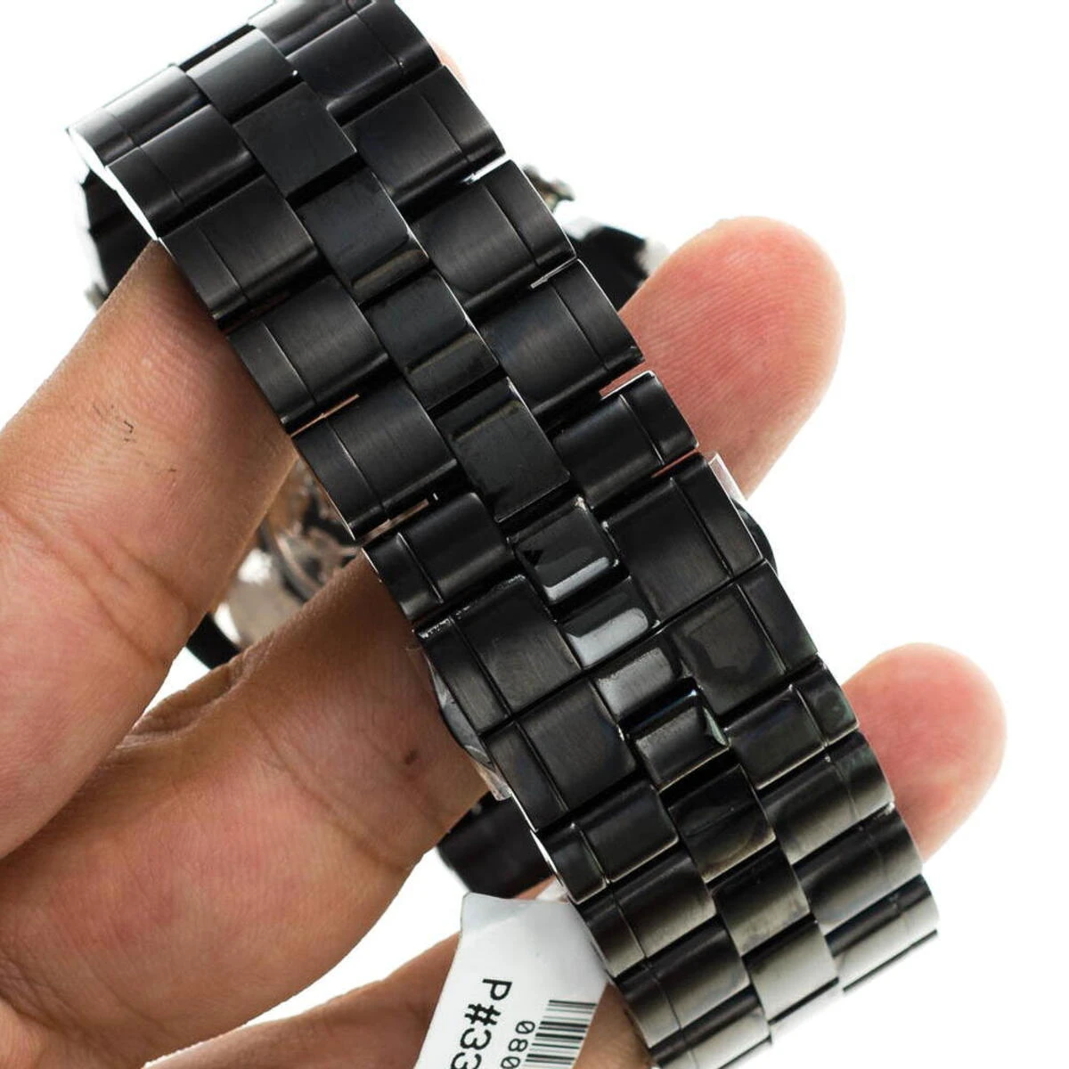 This Joe Rodeo Men’s Diamond Watch (Phantom Black) features 2.25 carats of round diamonds, a black stainless steel case, scratch-free crystal glass and black stainless steel band. This men’s diamond watch has two rows of white sparkling diamonds around the bezel with big diamonds at 3, 6, 9 and 12 hour markers. This watch also features white dial with Silver tone hour markers and a row of sparkling white stones around it. Super accurate Swiss-made quartz movement with chronograph function will keep the time for you. Water-resistant 100m (330 ft).