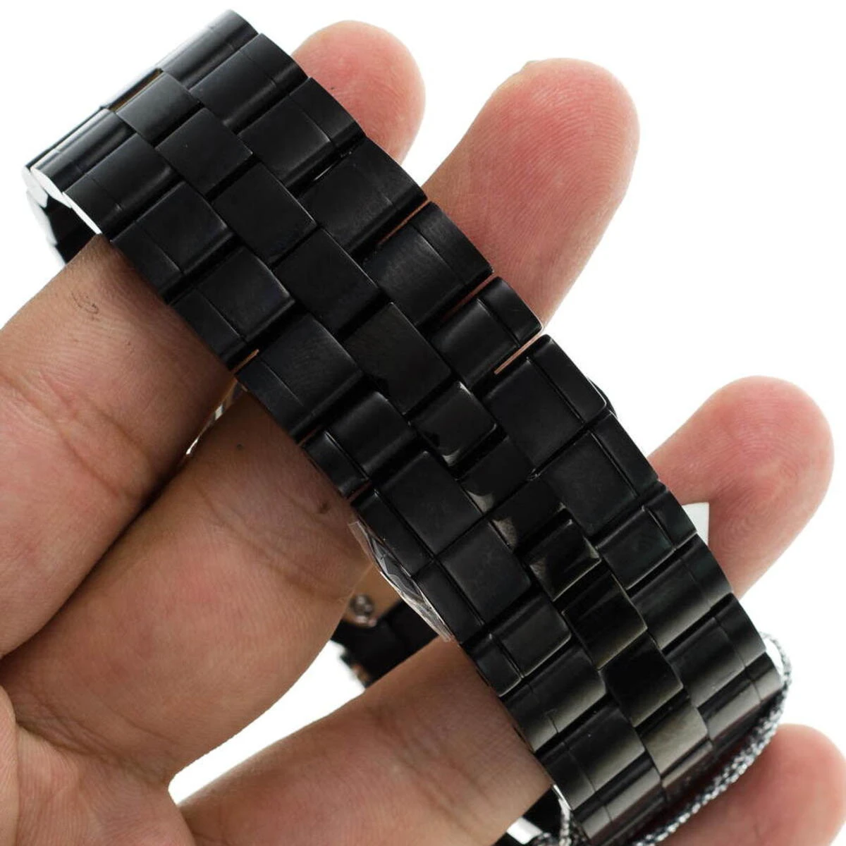Luxurious Joe Rodeo Watches! This Phantom Men’s Diamond Watch by Joe Rodeo is a new all black stainless steel men’s diamond watch with 3.25 carats of round diamonds sparkling on its bezel. This Joe Rodeo timepiece also features a brushed black stainless steel dial with silver tone hour markers and hands and a row of sparkling white stones around it. The super accurate Swiss-made quartz movement with chronograph function will keep the time for you. This Joe Rodeo Phantom is water-resistant 100m (330 ft).