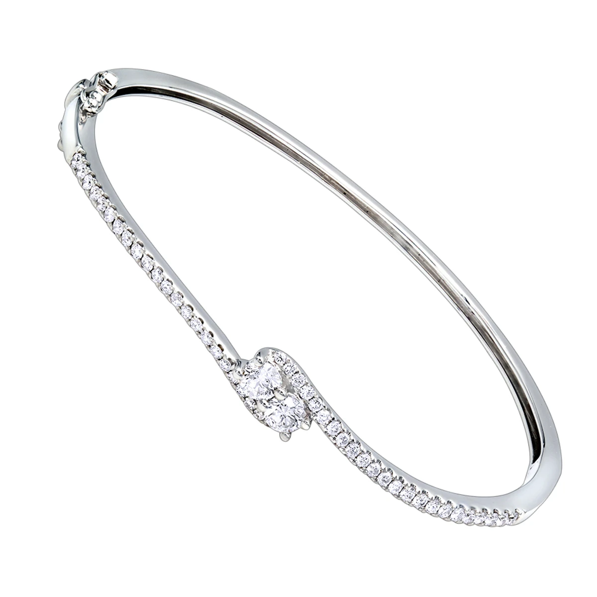 Unique Luxurman Women’s Diamond Bracelets Collection: this delicate ladies diamond bangle bracelet is made in 14k gold and features a popular love and friendship two large round diamonds in the middle design with pave diamonds going down on beautifully in a single row on each side making it a perfect gift that will be cherished forever. The bracelet features a secure lock with safety and is available in white gold, rose gold and yellow gold.