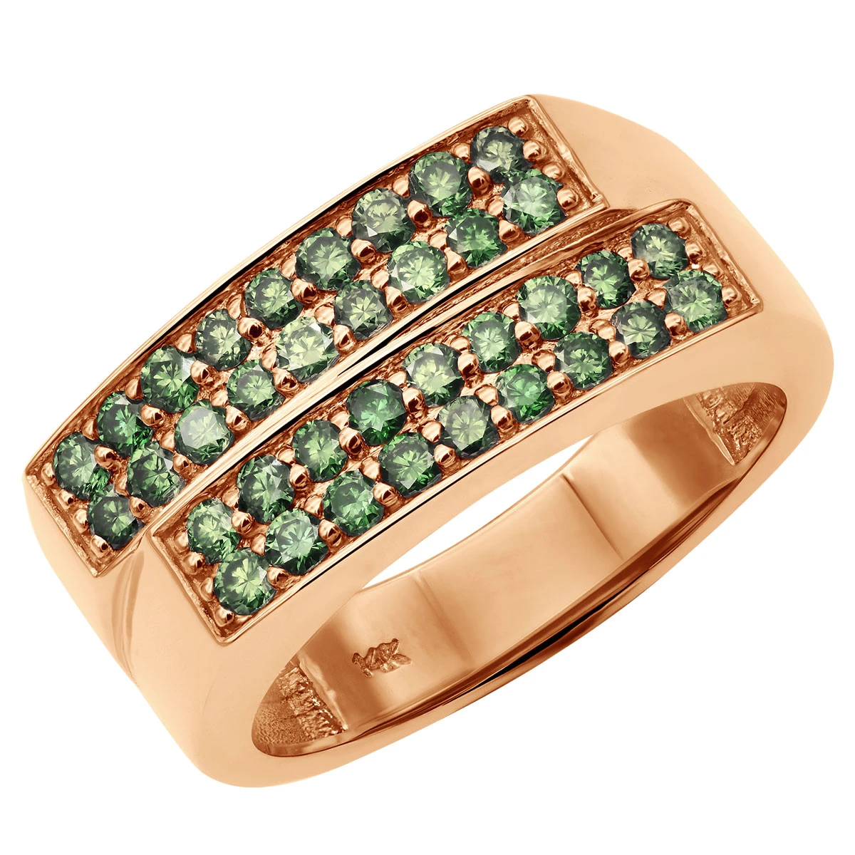 This exquisite Men’s Diamond Ring with Green Diamonds in 14k Gold features a Unique Design which can also worn as a wedding band is the perfect way to show your love and commitment. Crafted from 14k gold, this unique design of two halves coming together and features a stunning array of green diamonds set in a pave setting. The ring is approximately 10mm wide and is available in 14k yellow gold, white gold, rose gold, as well as 18k gold and platinum as a custom order.This ring is perfect for any special occasion, to be worn as an everyday ring or as a wedding band, or anniversary. The unique design is sure to make a statement and will be sure to be admired by all. The ring is also engravable, so you can add a special message or date to make it even more special. We can customize this men’s diamond ring with other color diamonds such as white, yellow, black, blue, rose, or with gemstones to your specifications or even make a completely new design. Buy this unique green diamond ring as it is or contact us to customize it to your specifications.Made in New York, USA.
