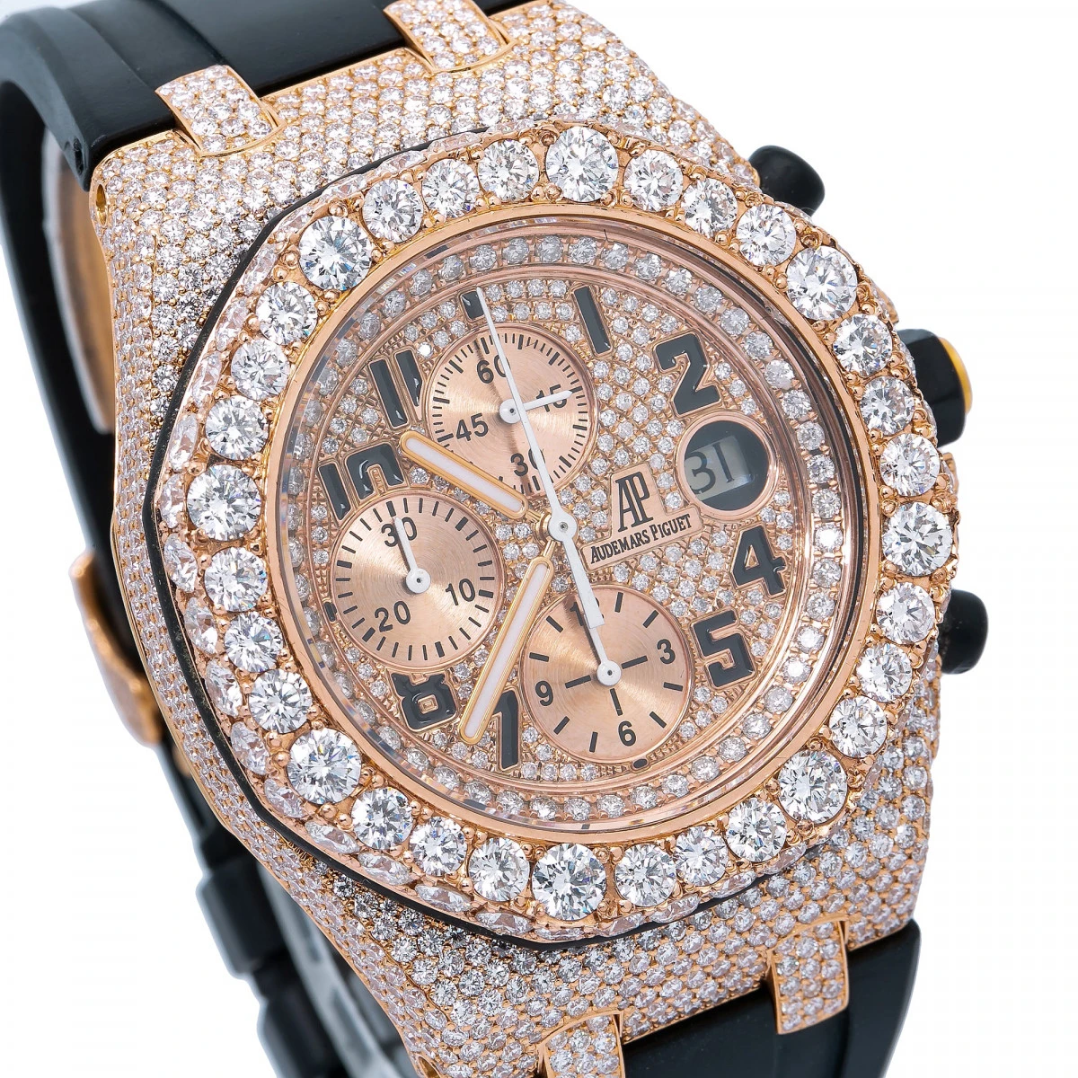 The Audemars Piguet Royal Oak Offshore Rose Gold W01244 Men’s Diamond Watch is a luxurious and sophisticated timepiece that is sure to turn heads. The watch features a 42mm rose gold case with a black rubber bracelet. The bezel is crafted from rose gold and is set with white diamonds for a truly dazzling effect. The watch is powered by an automatic movement and is water resistant up to 100 meters. The watch also features an engravable caseback and comes with a 5-year warranty.This watch is perfect for the man who wants to make a statement. The luxurious design and diamond accents make this watch a truly eye-catching piece. The rose gold case and black rubber bracelet make this watch a timeless classic that will never go out of style. The automatic movement ensures that this watch will keep accurate time for years to come. The engravable caseback is perfect for personalizing this watch with a special message or date.The Audemars Piguet Royal Oak Offshore Rose Gold W01244 Men’s Diamond Watch is sure to be a treasured piece in any man’s collection. With its luxurious design and diamond accents, this watch is sure to make a statement.