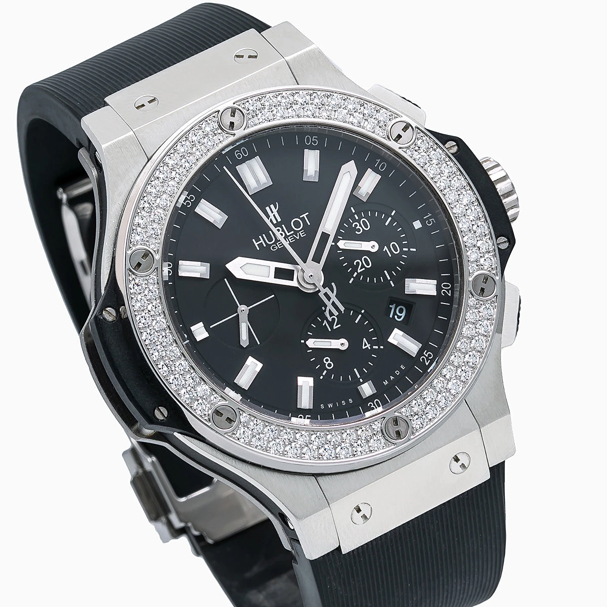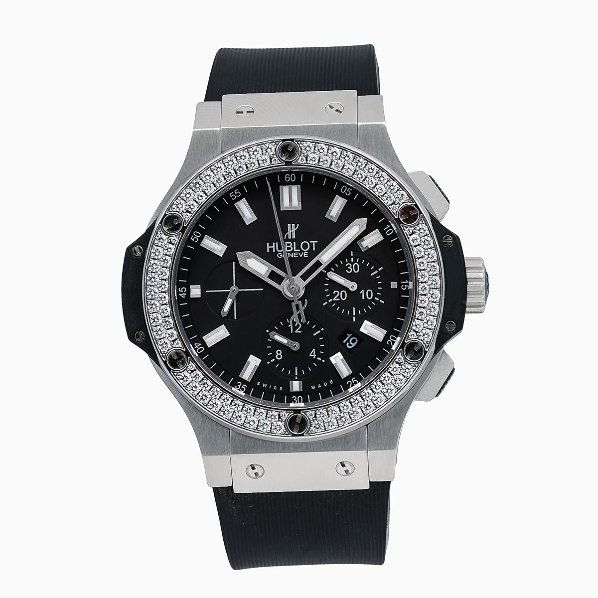 Introducing the Hublot Big Bang 44mm Black Dial Men’s Diamond Watch. This luxurious timepiece is crafted from stainless steel and features a white bezel set with diamonds. The black rubber bracelet is comfortable to wear and the black dial is adorned with a sapphire crystal for added protection. The watch is powered by an automatic movement and is water resistant up to 100 meters. The total carat weight of the diamonds is 1.2500 and the watch is engravable for a personal touch. This watch is the perfect accessory for any man who wants to make a statement. With its classic design and luxurious materials, this watch is sure to be a timeless addition to any wardrobe. Whether you’re looking for a special gift or a timeless timepiece for yourself, the Hublot Big Bang 44mm Black Dial Men’s Diamond Watch is the perfect choice.