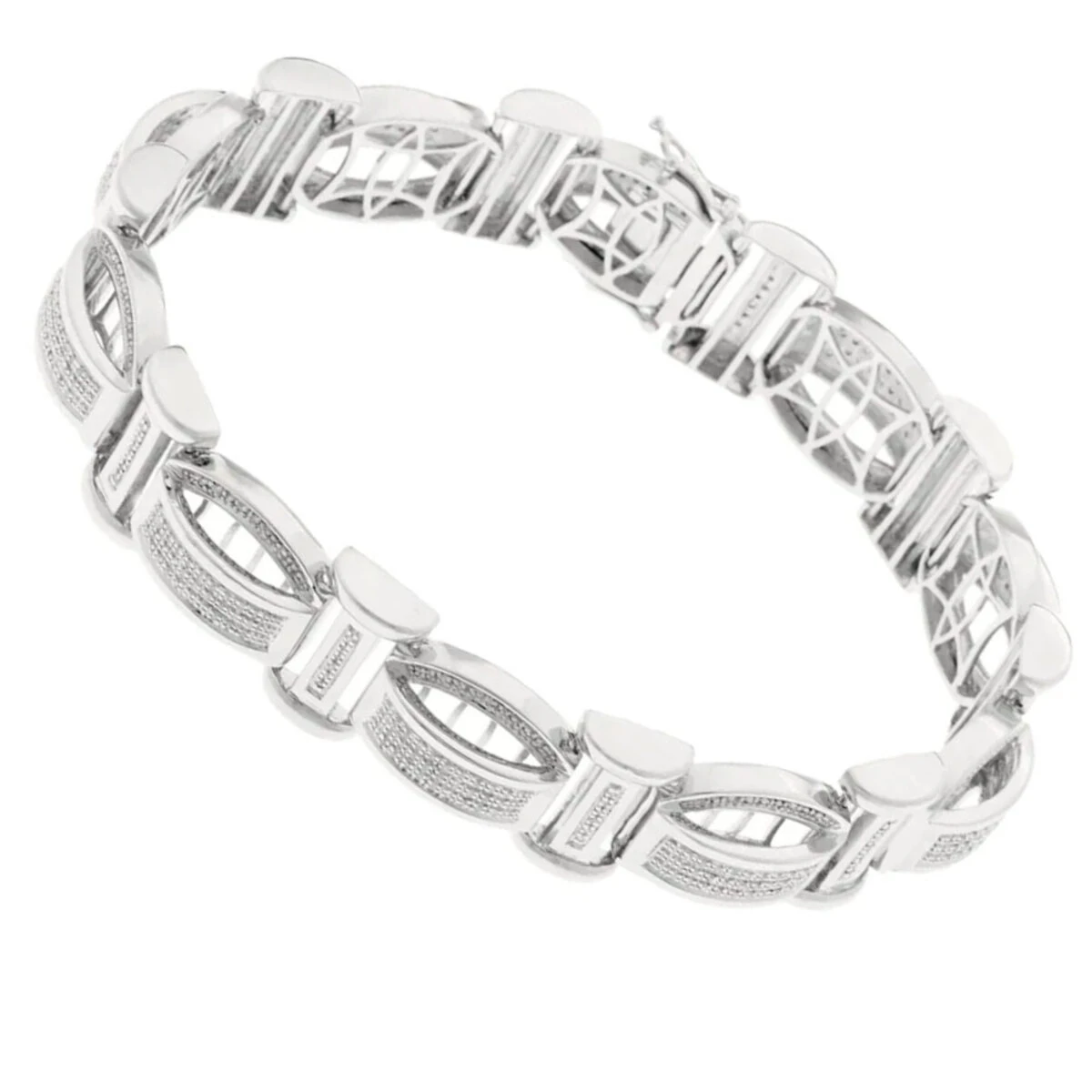 Unique Men’s Sterling Silver Bracelets: This Diamond Bracelet in silver weighs approximately 43 grams and showcases 1.25 carats of genuine diamonds. Featuring a trendy design and a luxurious rhodium plating, this men’s silver diamond bracelet is a great alternative to gold jewelry, and makes a great gift for a special occasion.