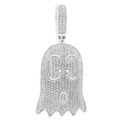 10K Yellow Gold Emoji Ghost Haloween Diamond Pendant For Men 1.2ct