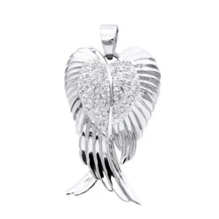 10K Yellow Gold Real Diamond Angel Wings Pendant Necklace 0.35ct