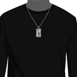 White And Black Diamond Dog Tag Pendant 1.5ct Sterling Silver