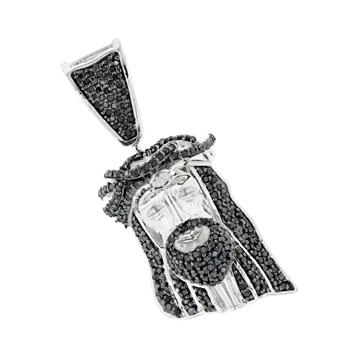 Solid gold Jesus Piece Pendants: This Mini Black Diamond Jesus Head Pendant Charm in solid 10K Gold weighs approximately 4 grams and showcases classic Jesus Face design done in 10k gold with 1/2 carat of sparkling black diamonds. Featuring a highly polished gold finish, this diamond Jesus charm is available in 10K white, yellow or rose gold and can be customized with any color diamonds. Chain must be purchased separately. You also can personalize this piece or check we’ve already made and create your own design.