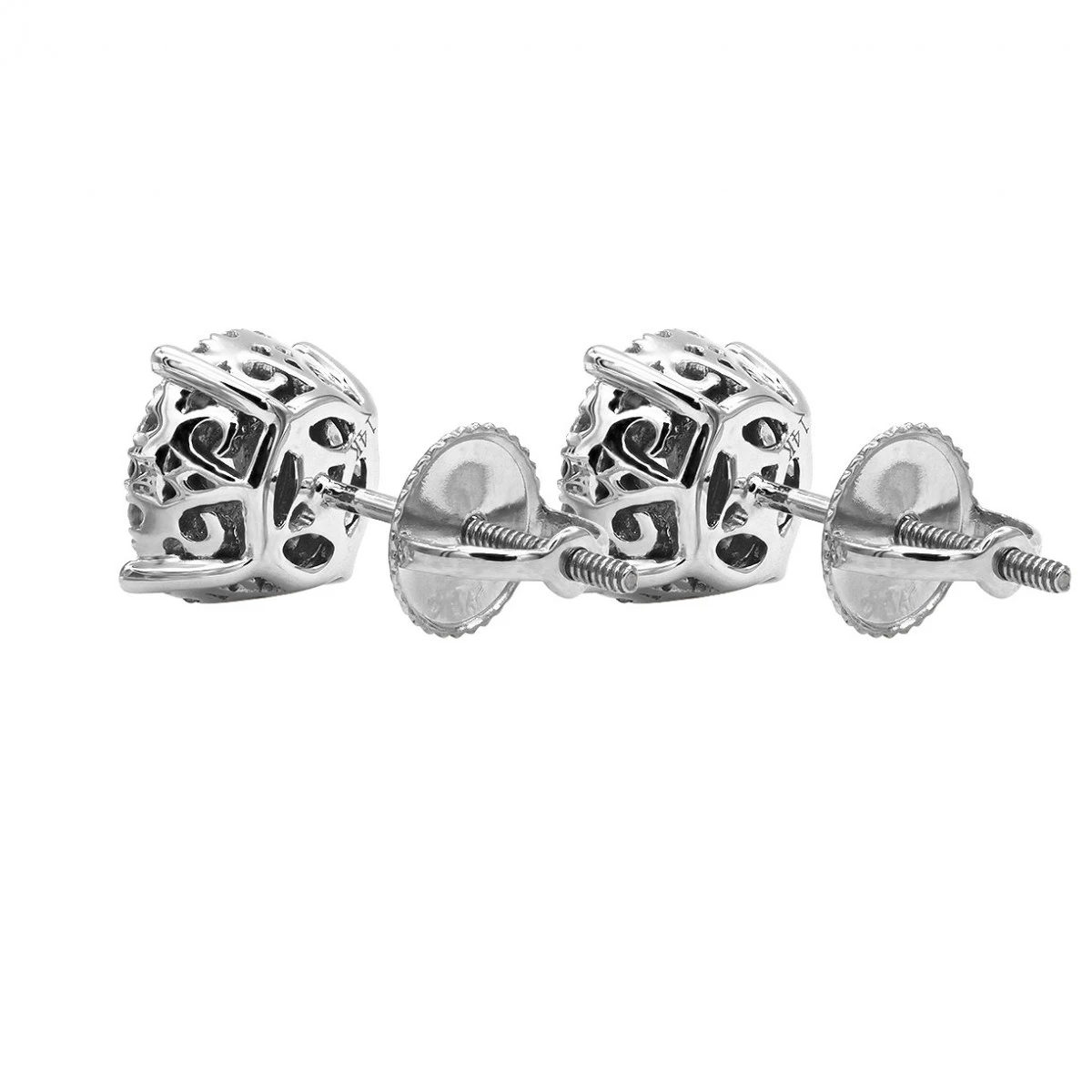 These Round Diamond Stud Earrings Pave Cluster Design showcase 0.76 carats of genuine dazzling round diamonds each masterfully set in 14K gold frames. These round diamond stud earrings are secured with screw back closures and are perfect for an everyday wear or a special night out. Featuring a beautiful craftsmanship, these versatile earrings are available in 14K white, yellow and rose gold.