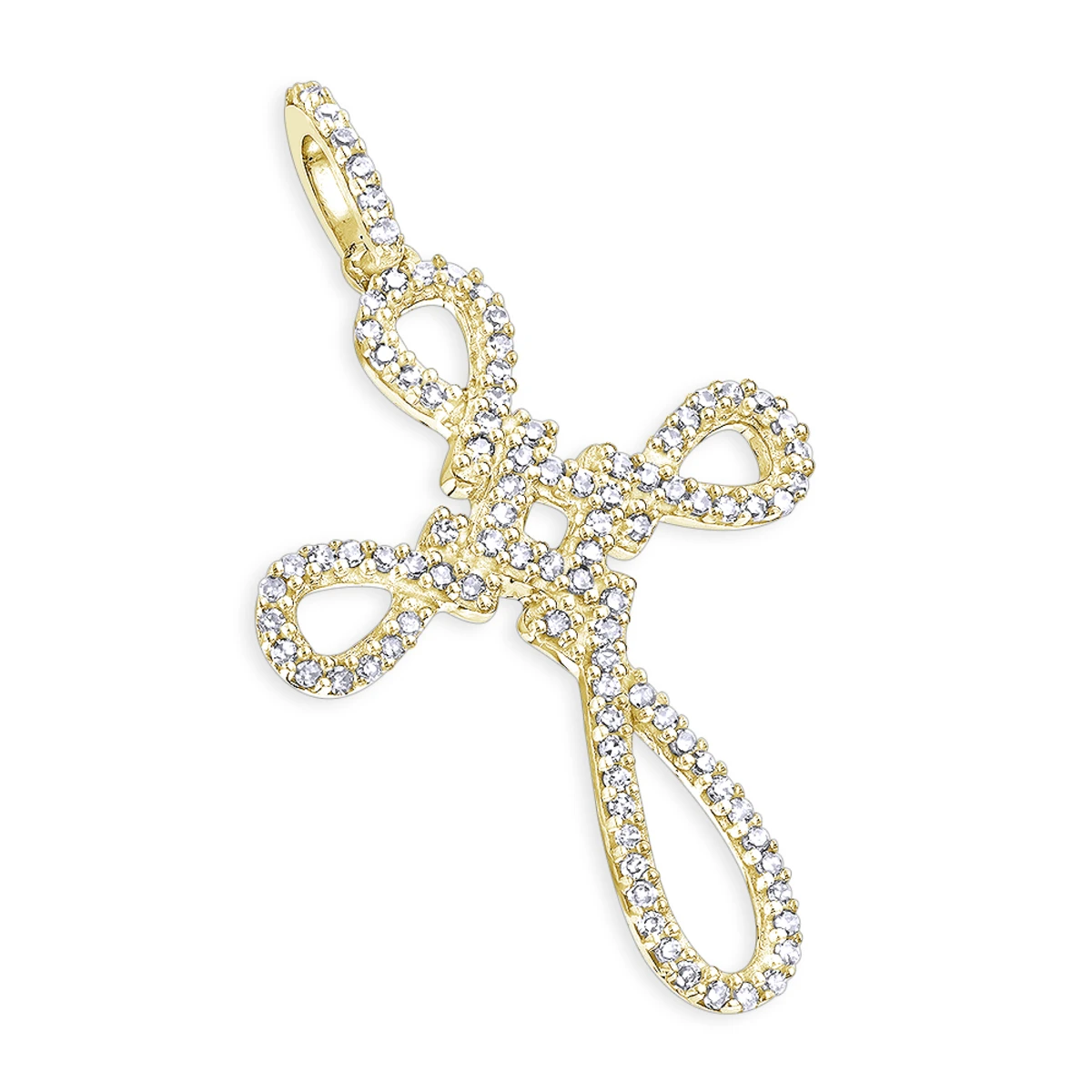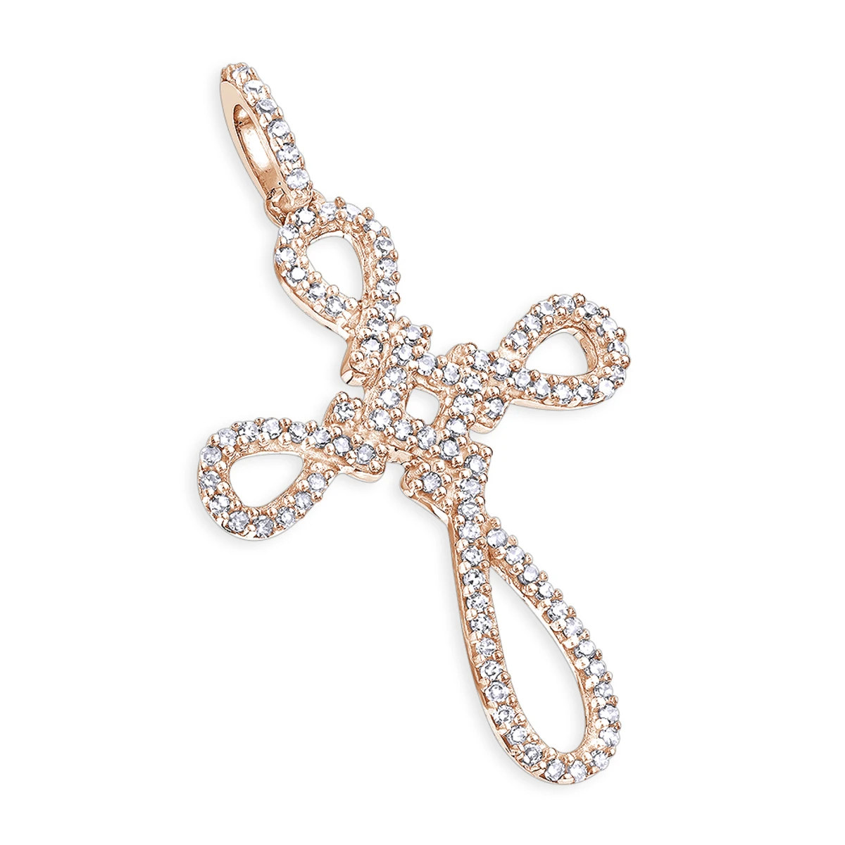 This Small 14K Gold Cross Pendant for Women with Diamonds showcases 0.2 carats of genuine diamonds; this ladies diamond cross pendant is available in 14K white gold, yellow gold and rose gold. Please note: Chain is for illustration purposes and must be purchased separately. You also can personalize this piece or check we’ve already made and create your own design.