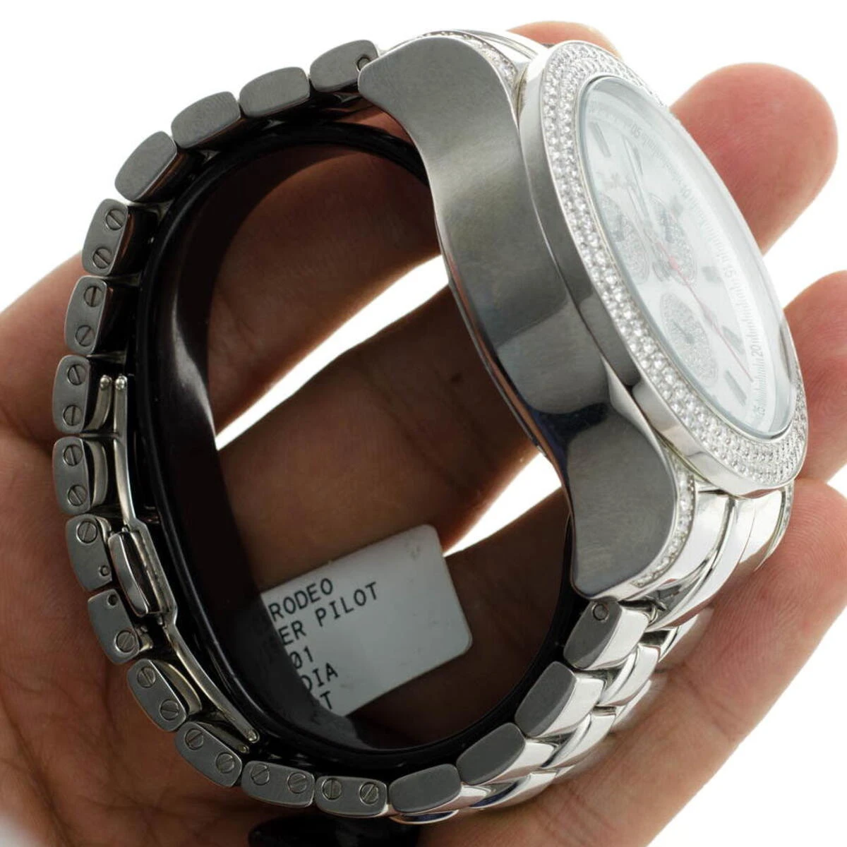 The Joe Rodeo Men’s 7 Carat Diamond Master Pilot Watch is a luxurious timepiece that is sure to make a statement. This watch is crafted from stainless steel and features a 49mm case diameter and width. The watch is powered by a Swiss-Quartz movement and features a chronograph, date indicator, and second hand-indicator. The watch is also water-resistant up to 100 meters and is adorned with 7 carats of diamonds for a truly luxurious look.The Men’s Diamond Watch is the perfect accessory for any man who wants to make a statement. The stainless steel case is sleek and modern, while the 7 carats of diamonds add a touch of luxury. The chronograph, date indicator, and second hand-indicator make this watch a great choice for any man who needs to keep track of time. The watch is also water-resistant up to 100 meters, making it perfect for any man who loves the outdoors.The Joe Rodeo Men’s 7 Carat Diamond Master Pilot Watch is the perfect choice for any man who wants to make a statement. The stainless steel case and 7 carats of diamonds make this watch a luxurious accessory, while the chronograph, date indicator, and second hand-indicator make it a practical choice. The watch is also water-resistant up to 100 meters, making it perfect for any man who loves the outdoors. The Men’s Diamond Watch is the perfect choice for any man who wants to make a statement.