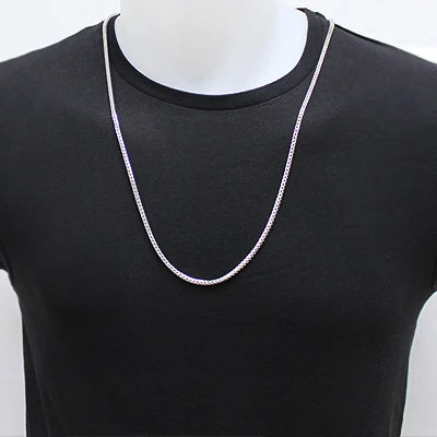 This Sterling Silver Franco Chain Necklace (3mm wide) is a squared off chain and weaved together for a luxurious look. It takes the top of the line craftsman to make this silver chain, where each individual facet is welded in a perfect fit for excellent movement and flexibility. This solid Italy made 925 sterling silver Franco chain will not kink and you can even roll it around your finger! It is a polished type chain, yet it catches the light with your every move. This chain is 3mm in width and 30 inches in length. It’s available in different chain lengths.