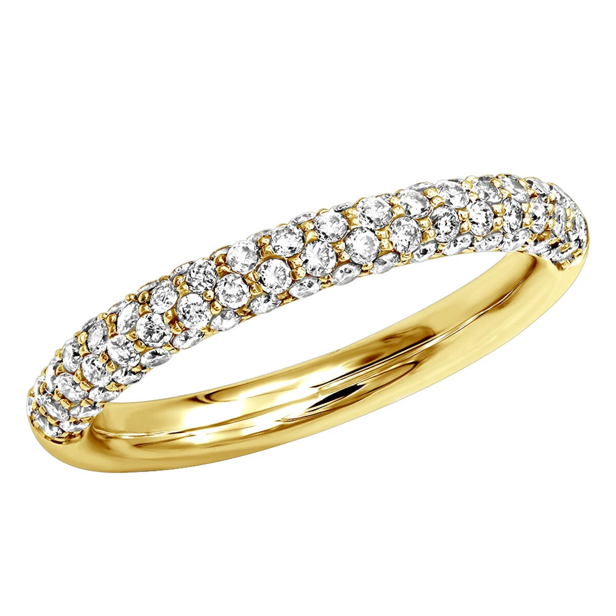 This Pave Diamond Wedding Band in 14K gold showcases 0.86 carats of sparkling round diamonds and is available in 14K white, yellow and rose gold.