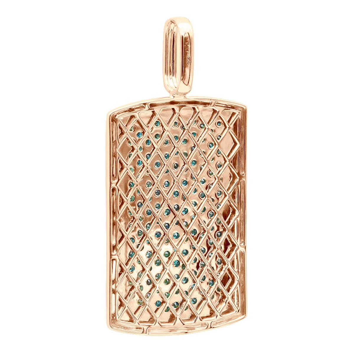 From our men’s diamond pendants collection This solid14K gold dog tag pendant with blue diamond weighs approximately 13 grams and features a fully paved in 3.25 carats of blue diamonds design. Glistening with sophistication, this impressive blue diamond dog tag military pendant leaves a long lasting impression and is available in 14k white gold, yellow gold and rose gold. All our diamond dog tags can be personalized with different color (canary yellow, blue, red, white or black) diamonds. Please contact us for details. You also can personalize this piece or check we’ve already made and create your own design.