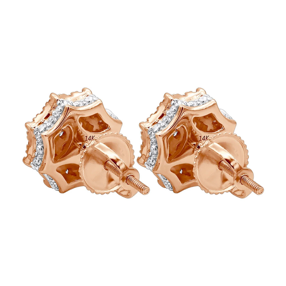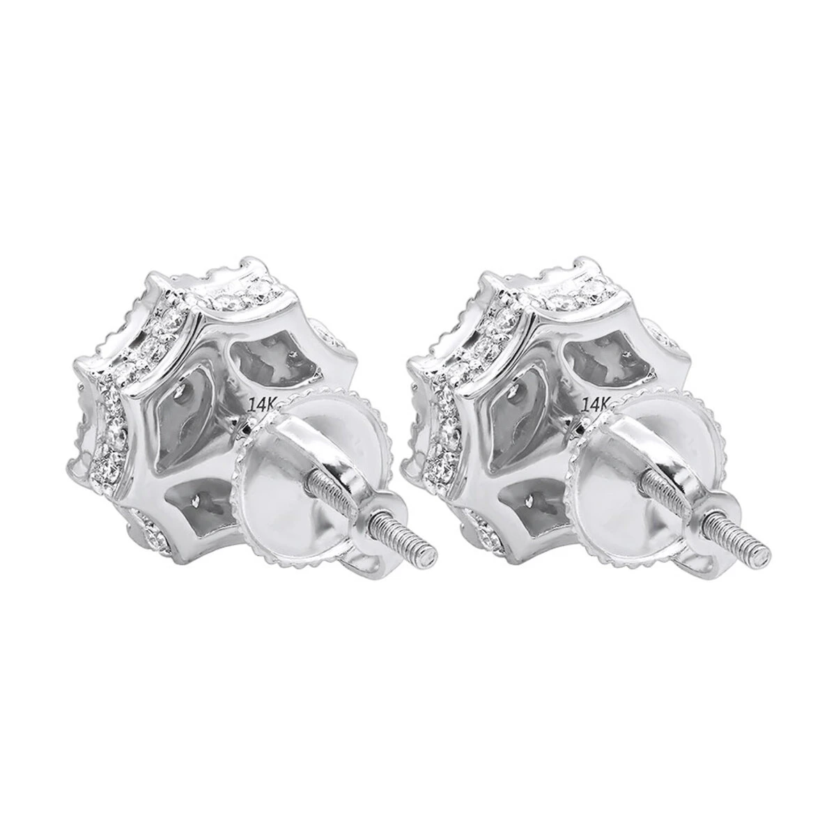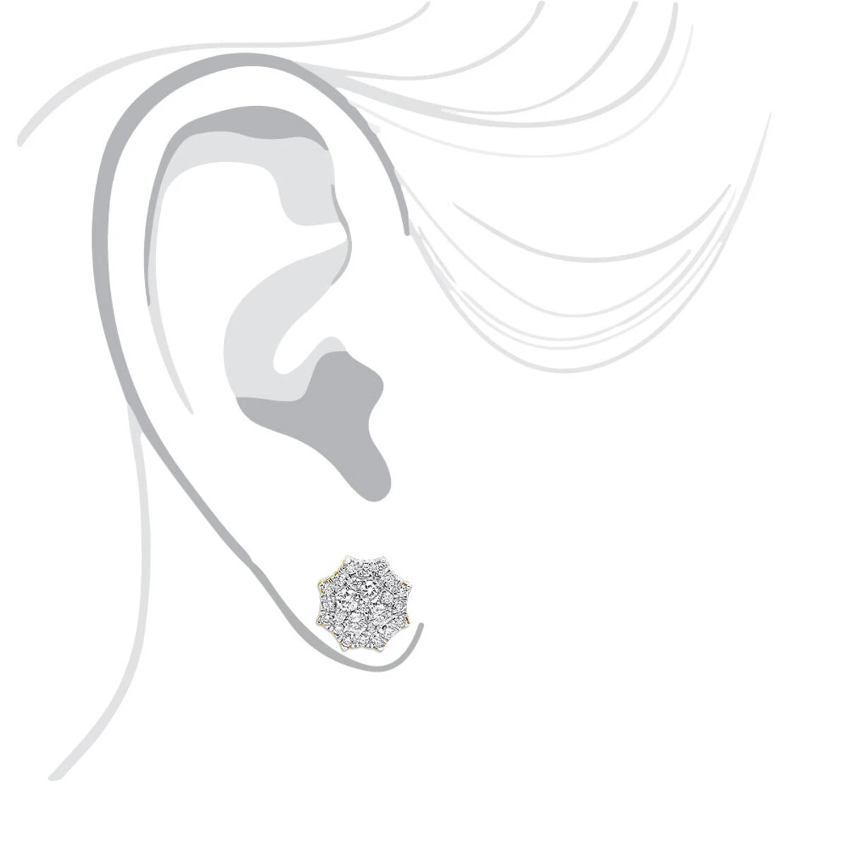From our diamond stud earrings collection: drawing inspiration from a winter wonderland, these octagonal shape snowflakelike 1.2 Carat 14K Gold Round Diamond Cluster Earrings by Luxurman catch the light and make it dance due to different sized round diamonds set on top and a layer of diamonds set on the sides of each earring. These magical earrings come with a beautiful packaging and will suit even the most sophisticated Snow Queens taste. These diamond earrings are just the right size for most ears at 10mm wide and the screw-back closures ensure secure wear on pierced ears. The earrings are available in 14K white, yellow or rose gold and will make a perfect gift for yourself or your loved one!