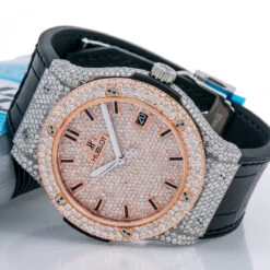 Men’s Diamond Watch Hublot Classic Fusion 18K Gold 45mm Rose Gold Tone Dial