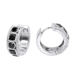 Unique Diamond Hoop Earrings Large Black Diamond Huggies 14K Yellow Gold 3ct