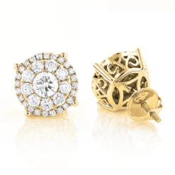 VS Diamond And Oval Ruby Stud Earrings For Women 18K Yellow Gold 3.74ct
