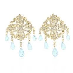 14K White Gold Diamond Chandelier Earrings Blue Topaz 0.64ct