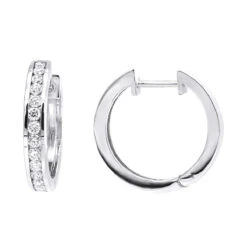 Classy Small 1/2 Inch Diamond Hoop Earrings 14K Yellow Gold Huggies Round Diamonds