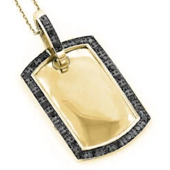Engravable Small 14K White Gold Black Diamond Dog Tag Pendant .80ct